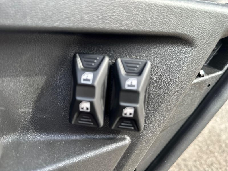 • Protection: Full glass tilt up windshield with wiper kit, Full color match front doors with locks and electric opening tinted windows, Rear color match doors with roll down window, Rear tinted glass window, Panoramic mirror, Full heavy-duty HMW plastic skid plate, Full hard roof with liner and dome light, Large heavy-duty front bumper, Mudguards, Floor mats