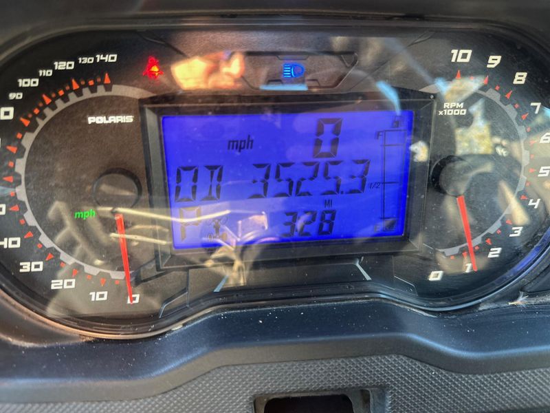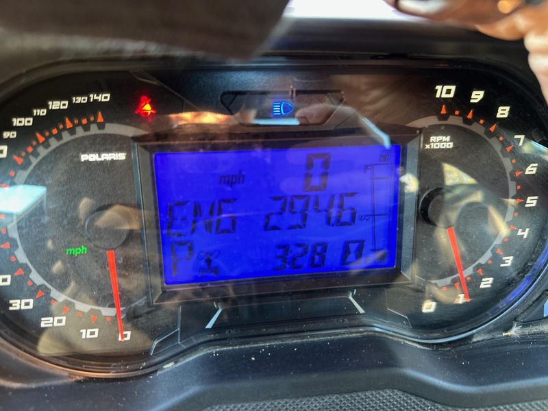 • Instrumentation: Dual-sweep Analog Dials w/ 4" LCD Rider Information Center: User Selectable Blue/Red Backlighting & Brightness, Programmable Service Intervals, Speedometer, Tachometer, Odometer, Tripmeter, Clock, Hour Meter, Gear Indicator, Fuel Gauge, Coolant Temperature, Voltmeter, Service Indicator and Codes, Seat Belt Reminder, DC Outlet, USB Charge Port, Automatic Speed Limiting in 2 mph increments starting at 16 mph to max speed.