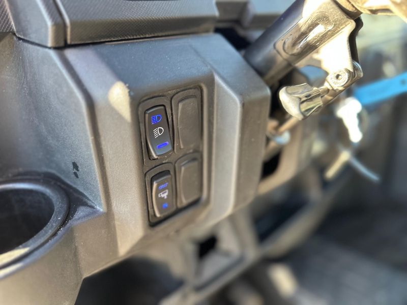 • Other Standard Features: Premium Pro-Shield Cab; Doors with Crank Windows; Fixed Glass Windshield with Wiper; Rear Glass Panel; Factory-Installed Heat, AC, Defrost; Rearview Mirror; Premium Steering Wheel and Interior Accents; NorthStar Tailgate Badge; Front Bumper with Integrated Winch, Plow & LED Mounts; Premium Cut & Sew Seats with Contoured Seatbacks and Embroidered Polaris Branding; Polaris HD 4500 lb. Synthetic Rope Winch with AutoStop and Wireless Remote; Polaris Pulse Electrical System (6-Position) Under hood Busbar and 6-Position Roof Busbar; 12V Accessory Outlet; Battery Trickle-Charging Outlet; USB Outlet